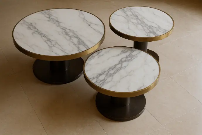 استبدل مظهرك التقليدي بطاولات رخامية مميزة تضفي لمسة من الفخامة والرقي على صالة منزلك. تصميم أنيق وجودة عالية تضمنان لك جمالًا يدوم وراحة لا تضاهى.